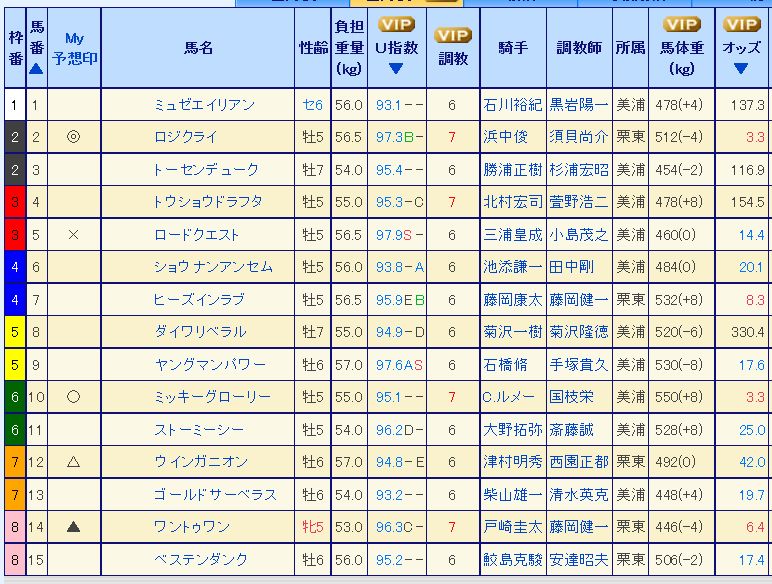 8 15 ウインソワレ 牝6 54 菱田裕二 栗東