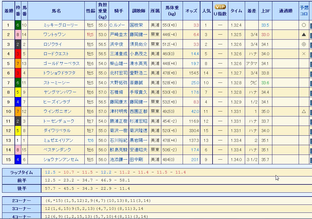 8 14 ファインニードル 牡5 58 川田将雅 栗東