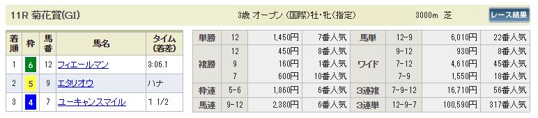 1 12 フィエールマン 3 57 ルメール 03:06.1 14.5