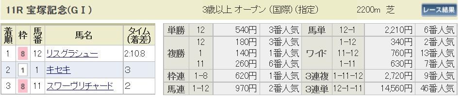 8 12 リスグラシュー 牝5 56 D.レーン 栗東