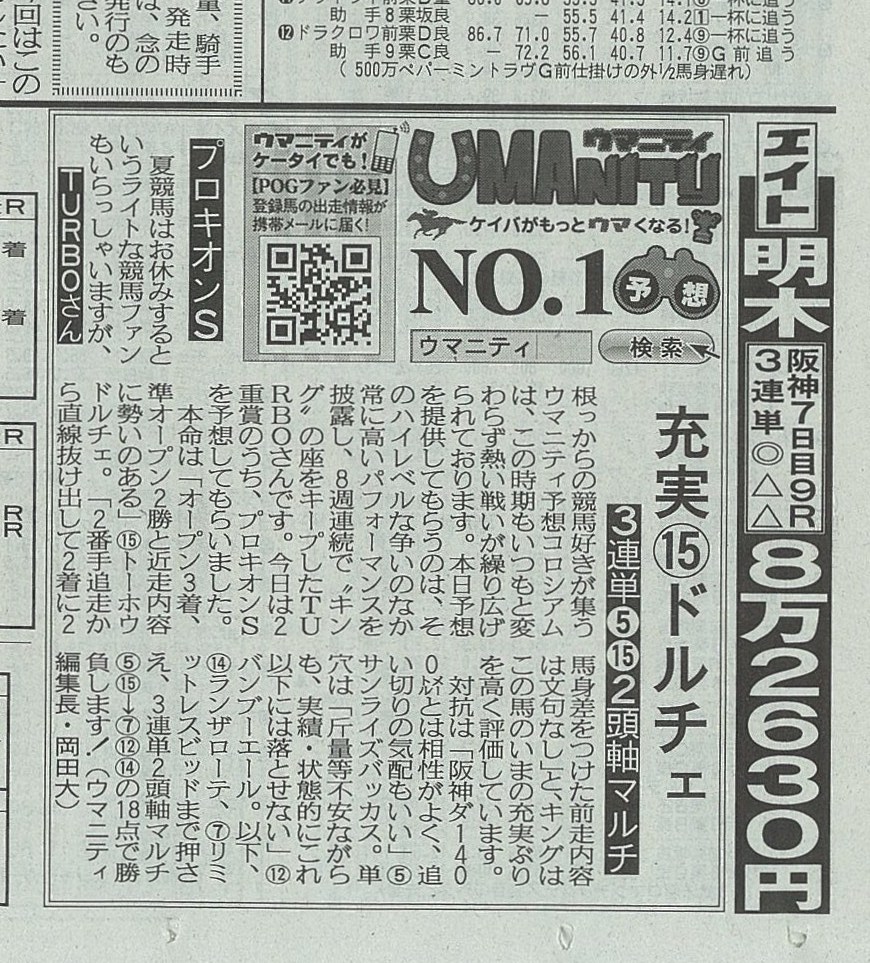 サンスポ ウマニティ№1予想