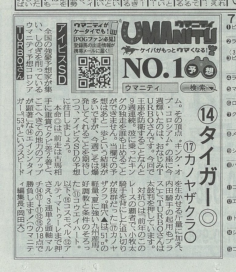 アイビスサマーダッシュの本命◎は、エイシンタイガー