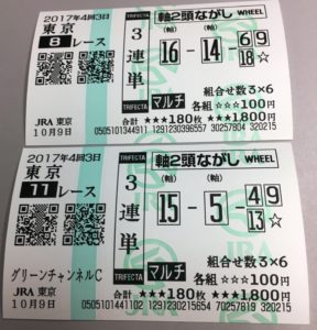 それでも、やっと東京7Rでは馬単の勝負でやっと的中しその勢いで思うものの京都10Rまでは的中がありませんでした。