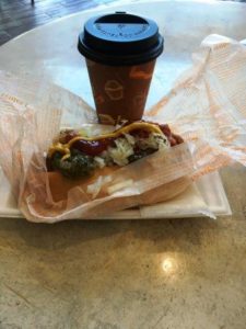 予想を終え、サウスさんも競馬場に行かれるとのことで、競馬場にご一緒させていただきました。サウスさんが馬主席に行かれている間、競馬場でホースならぬホットドッグを食べ朝食を済ませました。