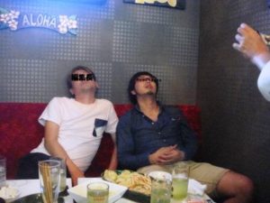 はじめてお会いするウマフレさんや何度かお会いしているウマフレさんと乾杯をし、また一緒に飲みましょうと話しながら懇親の夜はふけて御開きの時間ともなりました。宿を予約していない私は、編集長や河内プロ・夢月プロ・サウスプロたちに金魚のフンのように付いていきました。