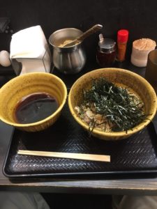 関西にはない日本蕎麦にラー油で食べるつけ麺が、生卵食べ放題でボリュームもあり満足しました。