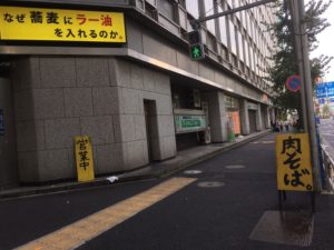 ミモザを出て、夜のお姉さんに捕まらぬようにアドバイスを受け、電通ビルから向かう時に見た、「肉そば」の食べ方の話を聞いたので立ち寄ることにしました。