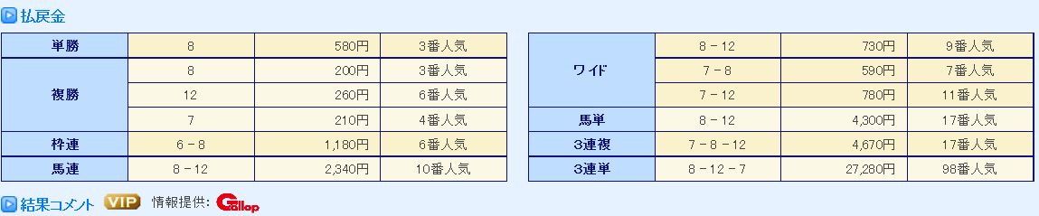 いよいよ、失意の中ながら12Rで3連系での的中にて当日を締めることができました。