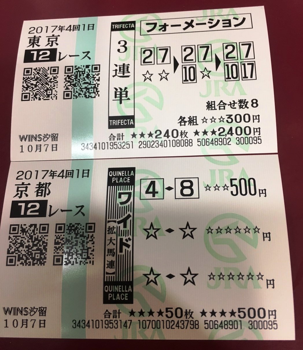 そして東京2Rを外し、京都3Rも上手くいかずなかなか思うようにはいかなかったのですが・・・。