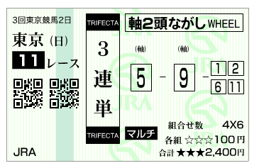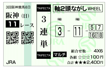 3連複BOX 2・4・5・6・8・11 20点